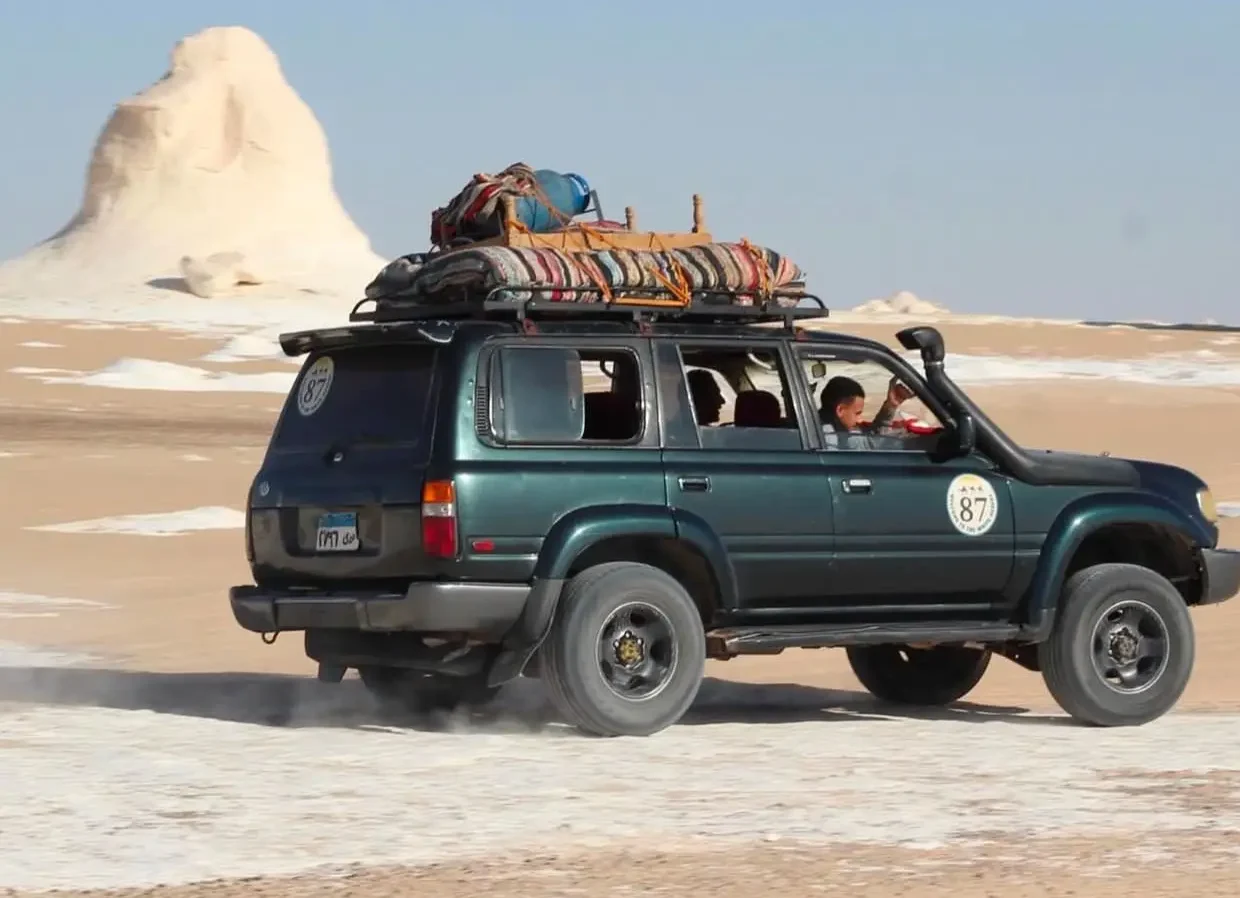3-day desert safari adventure to the White Desert and Djara Cave. The journey includes off-road 4×4 drives, visits to the Black Desert, Crystal Mountain, El Agabat, and the stunning White Desert formations. Experience Bedouin camping, desert sunrises and sunsets, Djara Cave exploration, hot springs, and unforgettable nights under the stars.